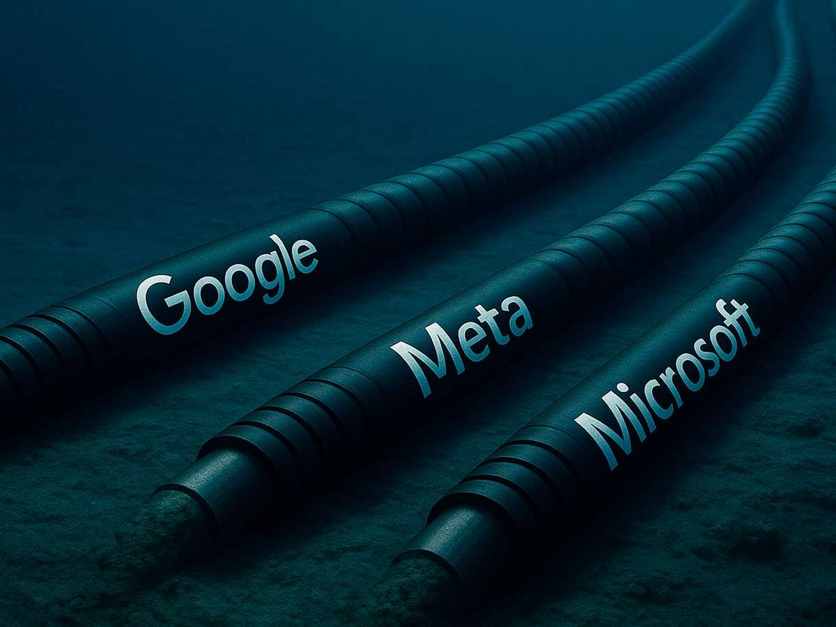 95% do tráfego global de dados passa por cabos submarinos. Google, Meta, Microsoft e Amazon já controlam grande parte dessa infraestrutura.