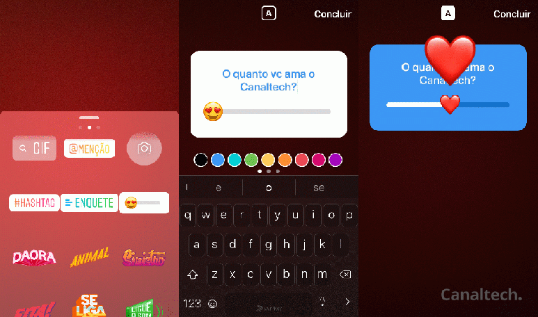 É um pouco difícil de descrever, mas fácil de entender e de usar. Imagine, por exemplo, que a pergunta seja "O quanto você ama o Canaltech?"; você poderá ajustar a barrinha de escala de acordo com o tamanho de sua paixão pelo nosso site. Trata-se de uma maneira divertida de complementar as enquetes — outro sticker adicionado recentemente ao Stories e que incentiva uma maior interação entre os usuários.