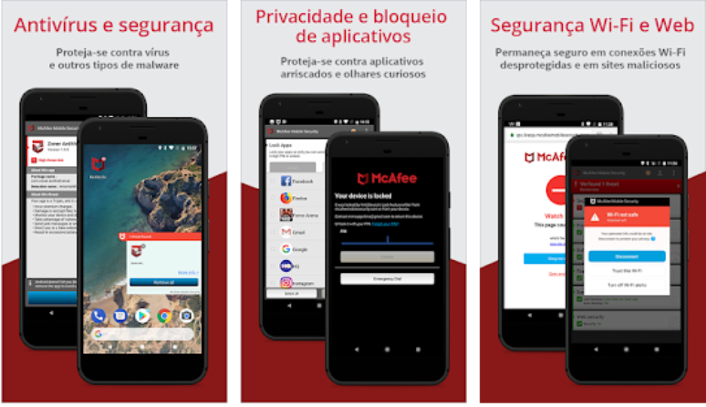O McAfee Mobile Security protege aparelhos Android a partir de funções antivírus, antispyware e antimalware. A partir da identificação da ameaça, o app atua removendo o vírus em tempo real e otimizando o desempenho do aparelho. A ferramenta permite, ainda, que o usuário faça backup de SMS e de seus contatos. O McAfee também conta com funções antirroubo, bloqueador de chamadas e rastreamento de uso de dados.