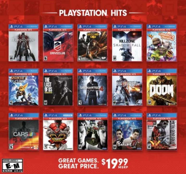 A Sony anunciou nesta terça-feira (19) a PlayStation Hits, seleção que trará jogos de sucesso do Playstation 4 em edições que custarão US$ 20.