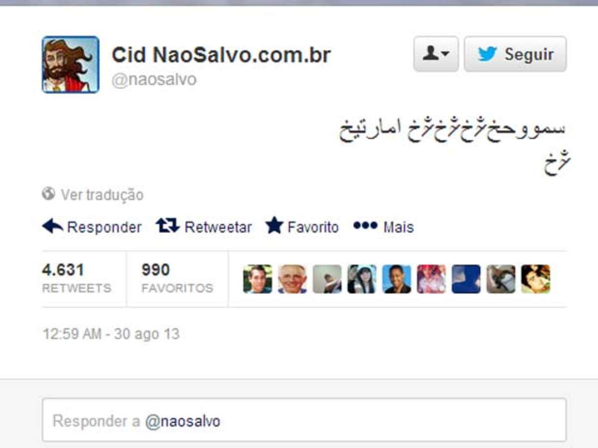Uma sequência aleatória de caracteres árabes é suficiente para travar dispositivos da Apple simplesmente com sua exibição na tela. Descoberto por pesquisadores russos - que afirmam ter reportado o problema à Apple há seis meses, sem que a empresa tenha tomado uma atitude -, o bug virou hit na internet no Brasil nesta sexta-feira, após um post do blogueiro Cid, do Não Salvo.