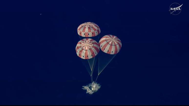 Pouco depois, a nave acionou seus flutuadores de segurança.