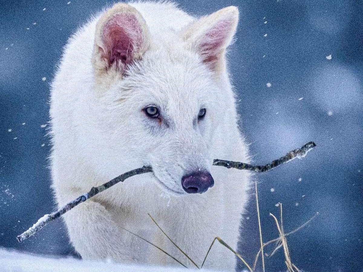Um lobo branco magnífico, branco como a neve, estampa a capa da revista Time, acompanhado de uma manchete anunciando que a espécie "voltou" da extinção.