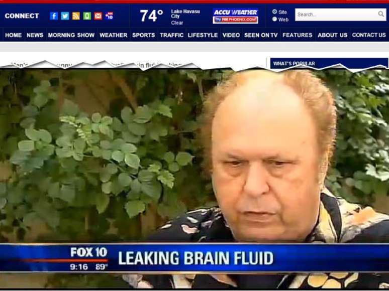 O americano então foi a um especialista que examinou o líquido e descobriu que a origem dele não era o nariz, mas o cérebro. "Eu quase morri de susto quando soube a verdade", diz. A membrana que protege o cérebro estava com um buraco e o fluído vazava por ali.
