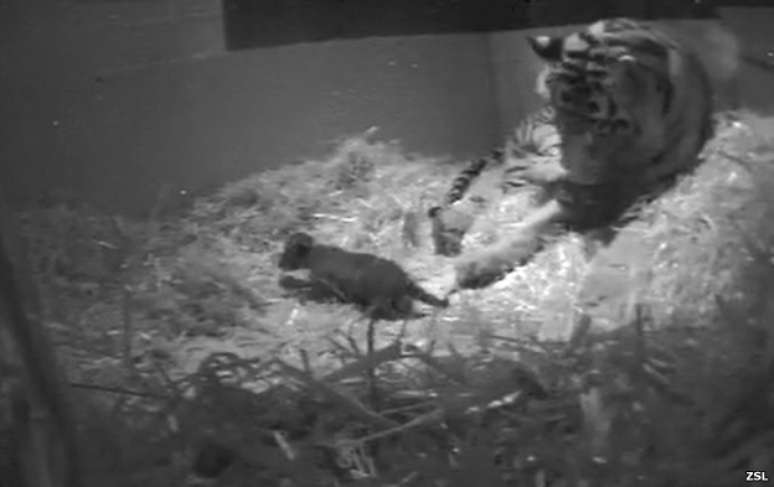 Câmeras ocultas capturaram o nascimento do primeiro filhote de tigre no Zoológico de Londres em 17 anos. A fêmea de tigre-de-sumatra Melati deu à luz ao filhote no dia 22 de setembro, após seis minutos de trabalho de parto