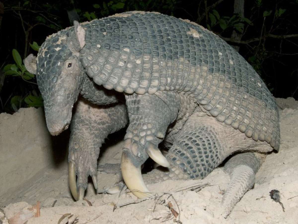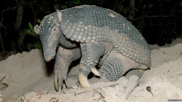 Tatus-canastras (Priodontes maximus) são verdadeiros "engenheiros do ecossistema", afirmam pesquisadores que descobriram que suas tocas servem como habitat e abrigo para outras espécies. O projeto 'Tatu-Canastra', feito no Pantanal, durou dois anos, e foi liderado pelo Instituto de Pesquisas Ecológicas (IPÊ) e pelo Royal Zoological Society da Escócia. O estudo pretende entender mais sobre esses animais, que gastam 75% de seu tempo no subsolo em tocas escavadas por suas impressionantes garras. (Tatu-canastra do lado de fora de sua toca. Foto: Kevin Schafer)