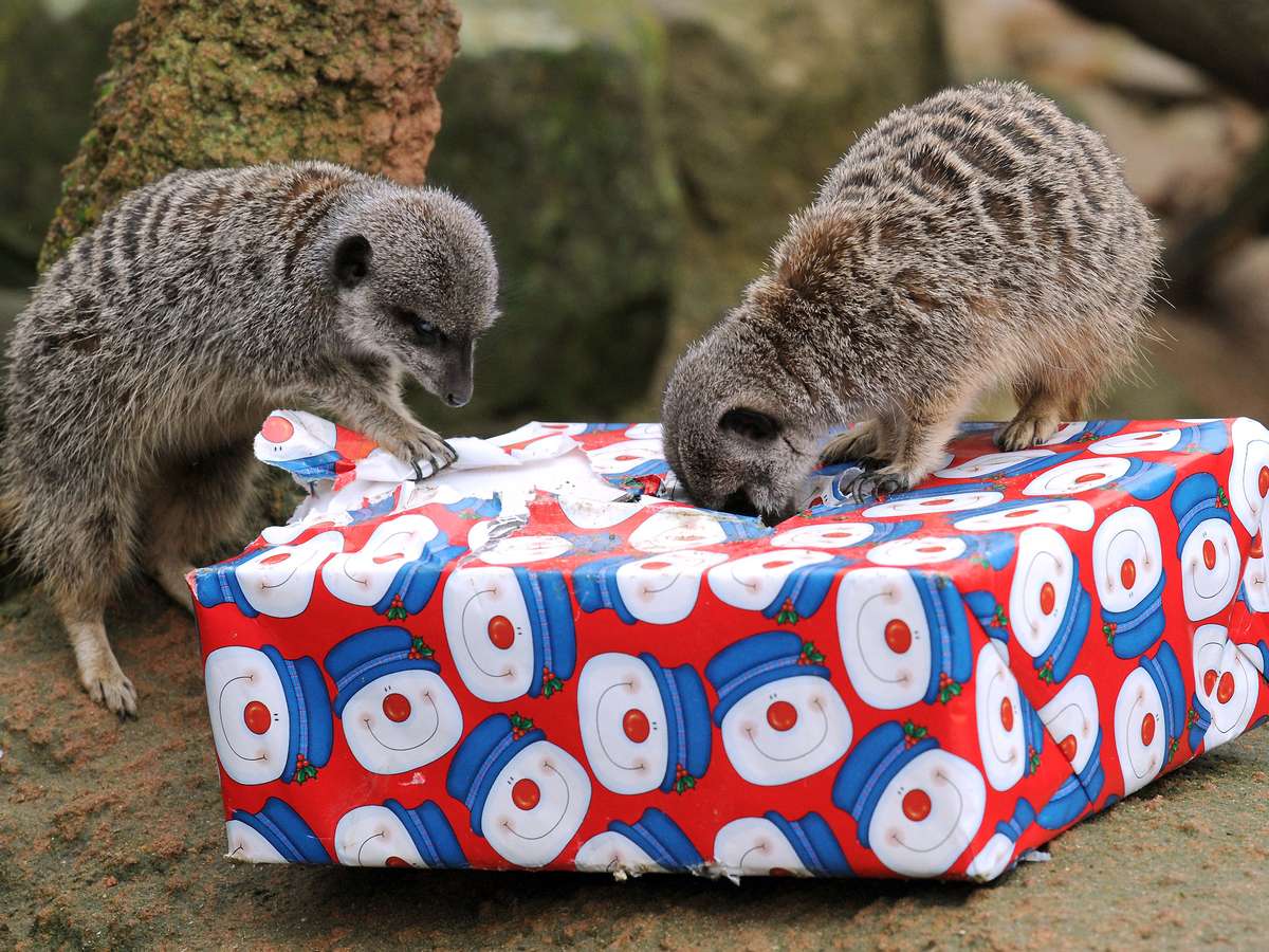 As comemorações natalinas ocorrem em vários zoos pelo mundo. Na imagem, um suricate recebe mimos em zoo de Sydney, na Austrália