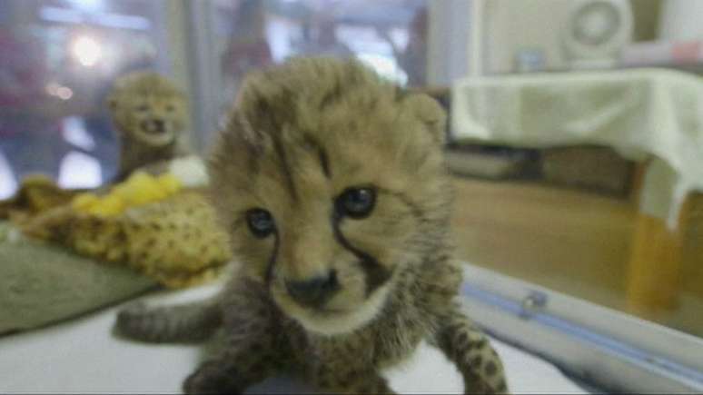 Dois filhotes de guepardos foram apresentados ao público e à imprensa em San Diego, na Califórnia, neste final de semana.
