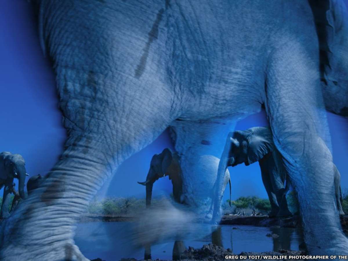 Uma foto de um grupo de elefantes em cores azuladas, resultante da ideia de tentar captar a "essência" do animal, rendeu ao fotógrafo sul-africano Greg du Toit o prêmio máximo do Veolia Environment Wildlife Photographer 2013, um dos principais concursos de fotos de vida selvagem do mundo.