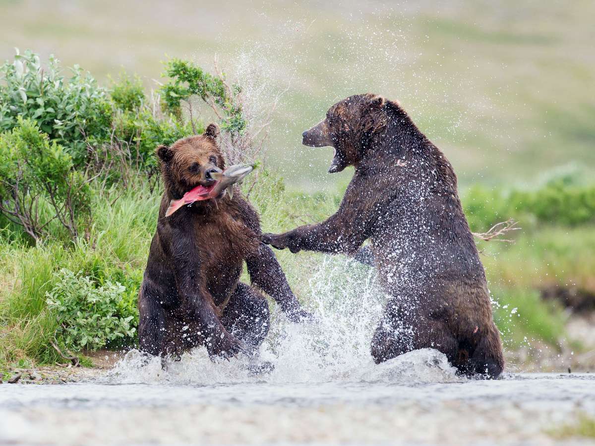 Os ursos-pardos costumam banquetear salmões