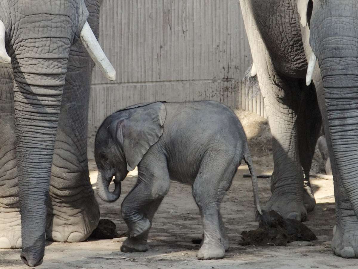 Uma pequena elefante ainda sem nome caminha ao lado da mãe, Tonga, e sua irmã Morgu no zoológico Schoenbrunn de Viena, na Áustria. A elefante nasceu ontem (4 de setembro) após uma gravidez que durou 645 dias e representou a primeira inseminação bem-sucedida de um elefante-africano com a utilização de esperma congelado de um elefante da África do Sul