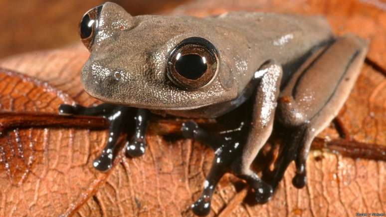 Cientistas anunciaram a descoberta de novas espécies de animais no Suriname. A perereca com cor de chocolate da foto acima é do gênero Hypsiboas. Os aros nas extremidades de seus dedos a ajudam a subir árvores