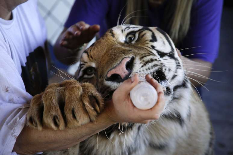 PUBLICIDADE Capa Byte Ciência Animais Animais PR: família trava batalha na Justiça para manter tigres em casa Compartilhar Tom, outro tigre que vive com a família, recebe o mesmo tratamento Foto: AP Ary Borges dá leite na mamadeira para o tigre Dan, que pesa mais de 315 quilos e é tratado como animal doméstico na casa da família em Maringá (PR) Foto: AP Tom, outro tigre que vive com a família, recebe o mesmo tratamento Foto: AP Nesta imagem, a família se prepara para o café da manhã junto ao tigre Tom Foto: AP Além dos tigres, a família ainda tem dois leões, um macaco e um pequeno cachorro da raça chihuahua Foto: AP O cachorro da família, Little, já se acostumou com o colo de Tom Foto: AP Uma das filhas de Ary Borges contou que não tem temor em deixar a filha, de 2 anos, junto com tigres que pesam cerca de 315 quilos Foto: AP Os gastos com a manutenção dos animais são cobertos com a participação em filmes e comerciais Foto: AP A família agora está travando uma batalha judicial, já que o Ibama quer tirar a licença que eles têm para ficar com os animais Foto: AP O órgão ambiental afirma que os tigres, por serem animais selvagens, representam riscos aos humanos Foto: AP Ary Borges diz que nunca houve nenhum incidente envolvendo os tigres e que eles são muito dóceis Foto: AP Os tigres vivem junto com a família, tomam banho na piscina e se divertem no pátio Foto: AP Compartilhar Publicidade Compartilhar TAGS Animais Byte Ciência Publicidade