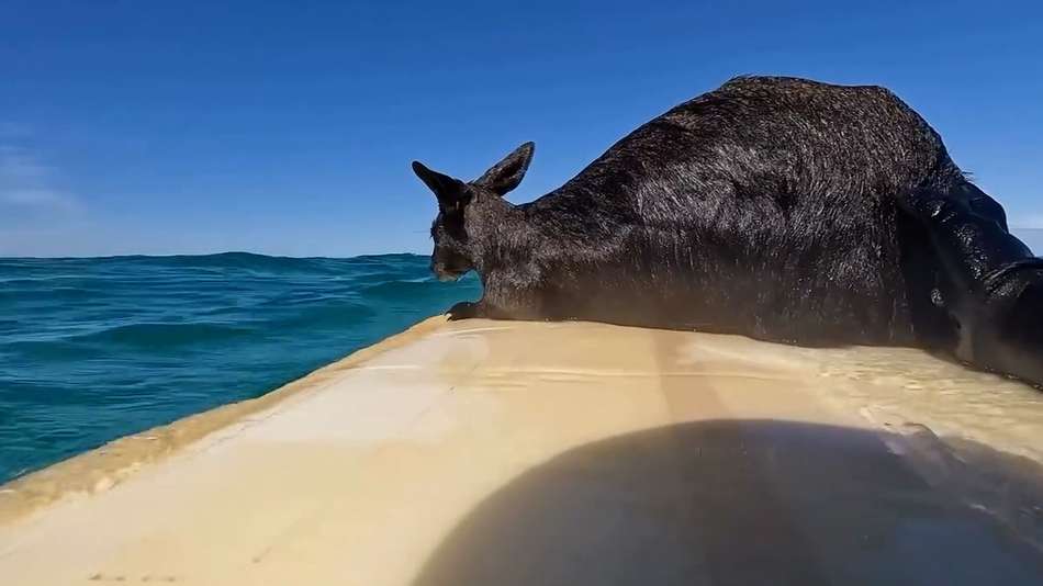 Canguru é resgatado por surfistas em alto mar na Austrália