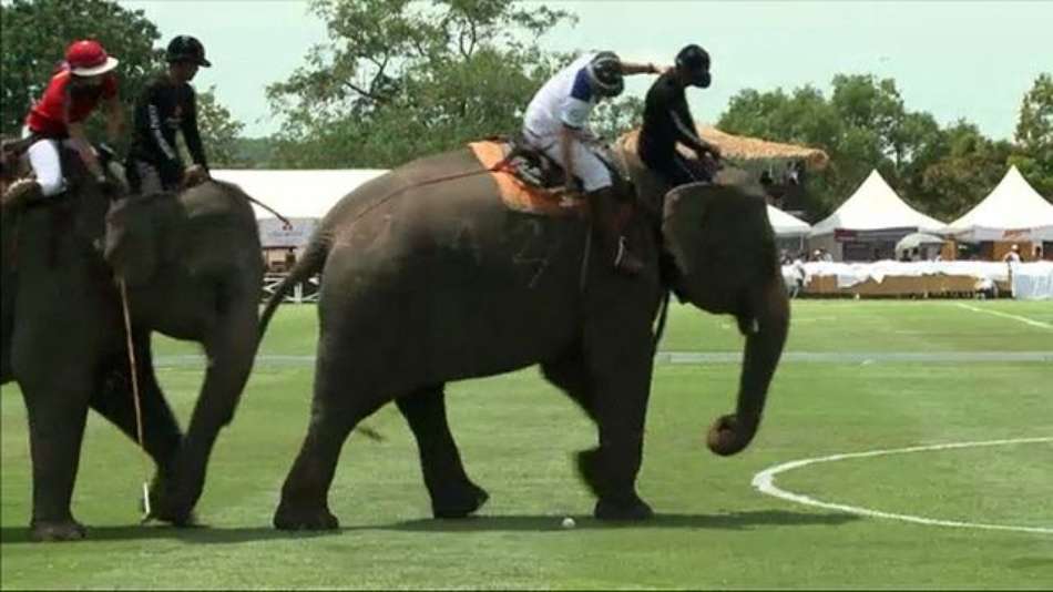 Animais Jogo de polo com elefantes cria polêmica na Tailândia Exibir comentários Compartilhar Atletas dizem que jogo com elefantes é bem mais difícil do que com cavalos; defensores dos animais criticam atividade AFP Publicidade