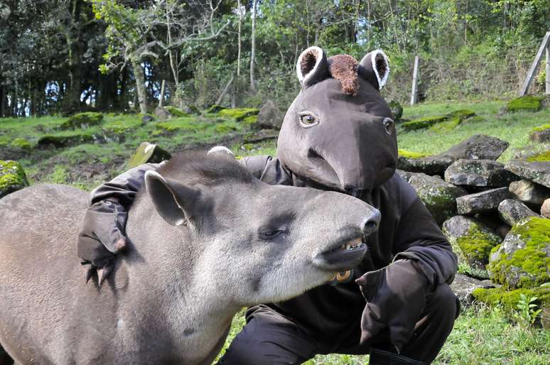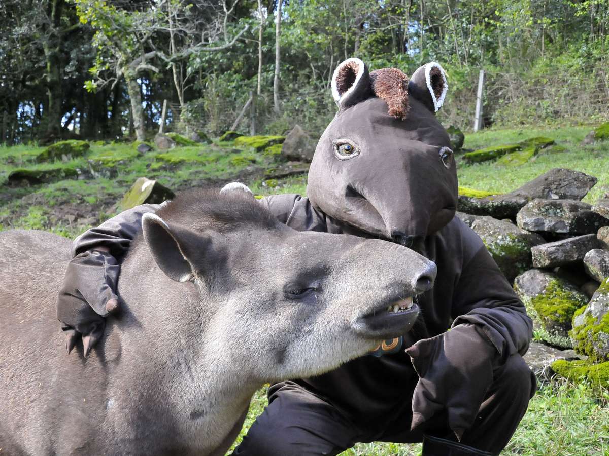 O GramadoZoo, na serra gaúcha, começou em julho, época de férias escolares, uma ação educativa para tirar da anta a visão de animal sem inteligência. Entre as atividades, um tratador usa uma fantasia do bicho para chamar atenção de visitantes.