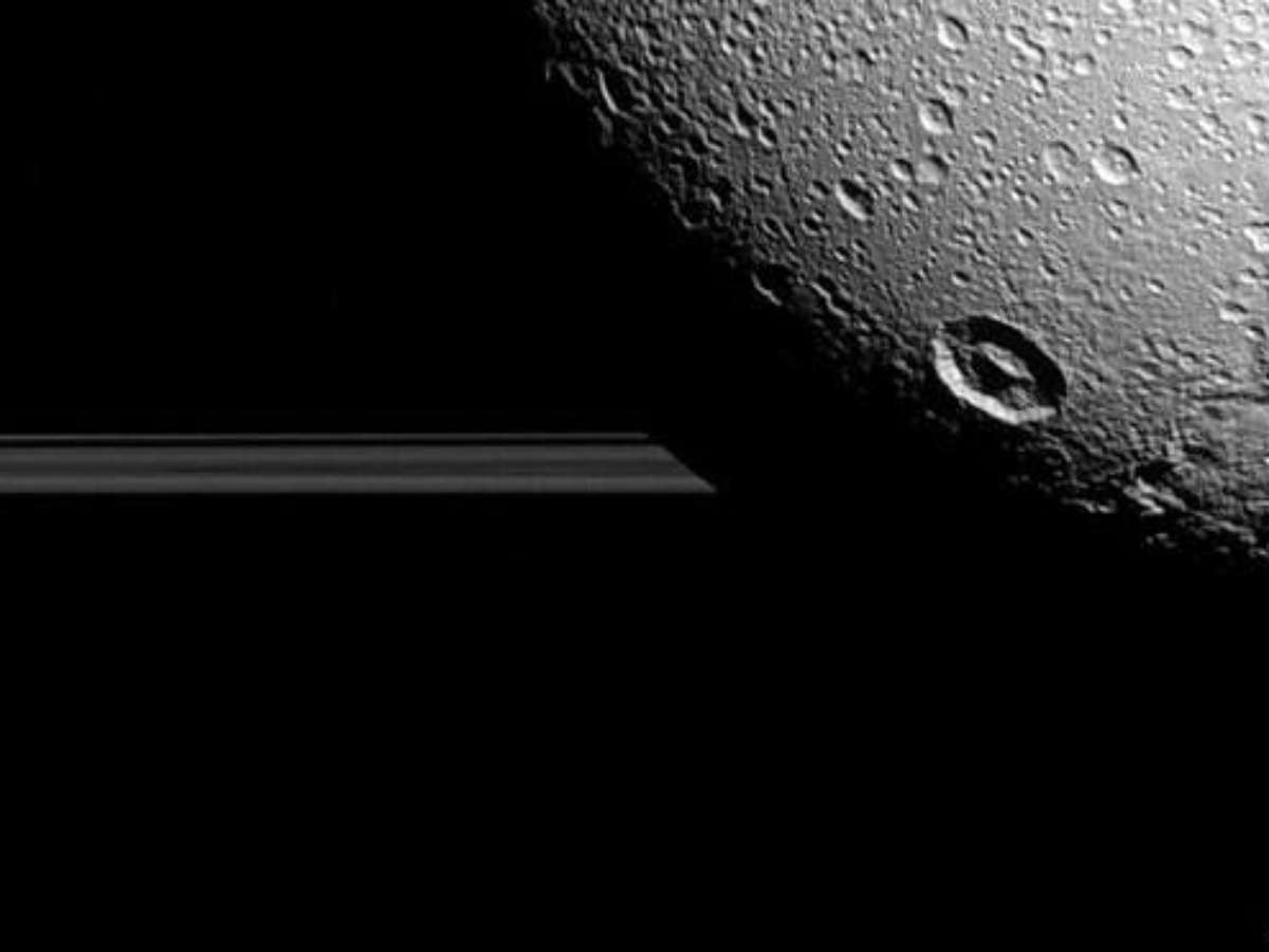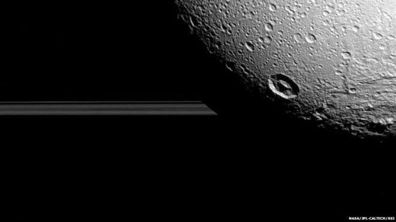A Cassini chegou mais perto de Dione em 2011, quando a missão passou a apenas 100 quilômetros acima da superfície do corpo celeste. Dione tem um diâmetro de 1.122 quilômetros, um exterior coberto de gelo e interior rochoso.