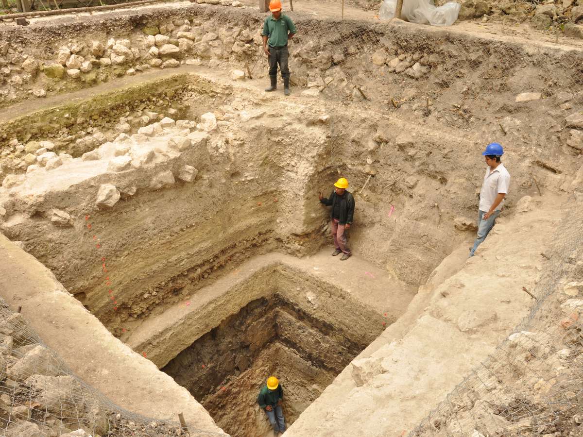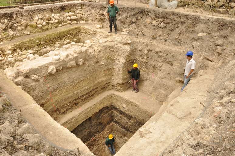Pesquisadores investigam escavação no sítio arqueológico de Ceibal, no México