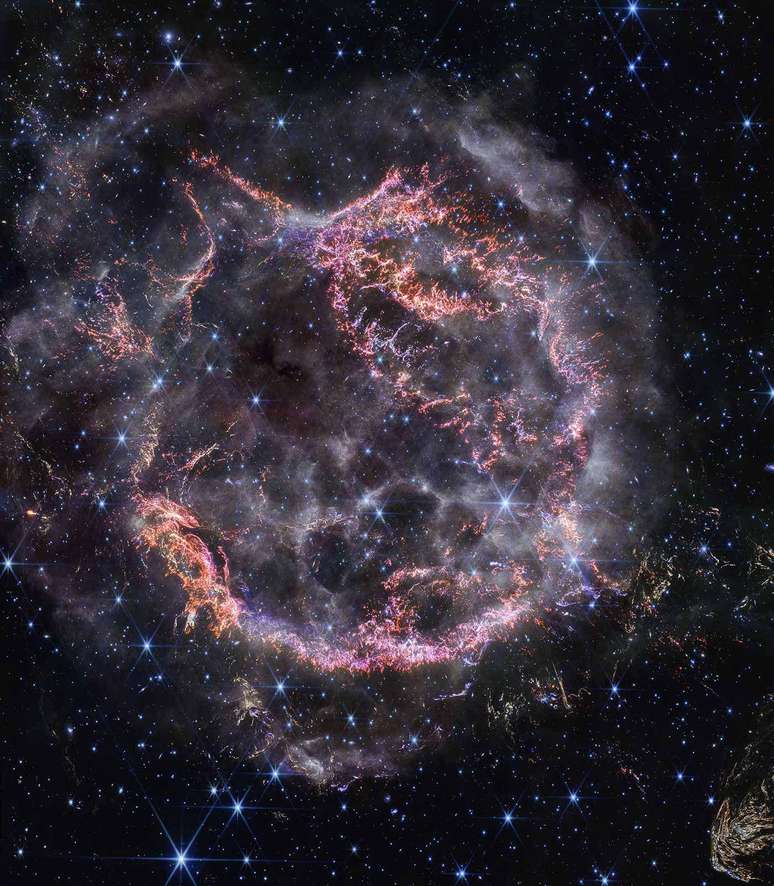CASSIOPEIA A | As camadas de detritos em expansão de Cas A, uma estrela explodida (ou supernova). O anel principal dela tem cerca de 15 anos-luz de diâmetro.