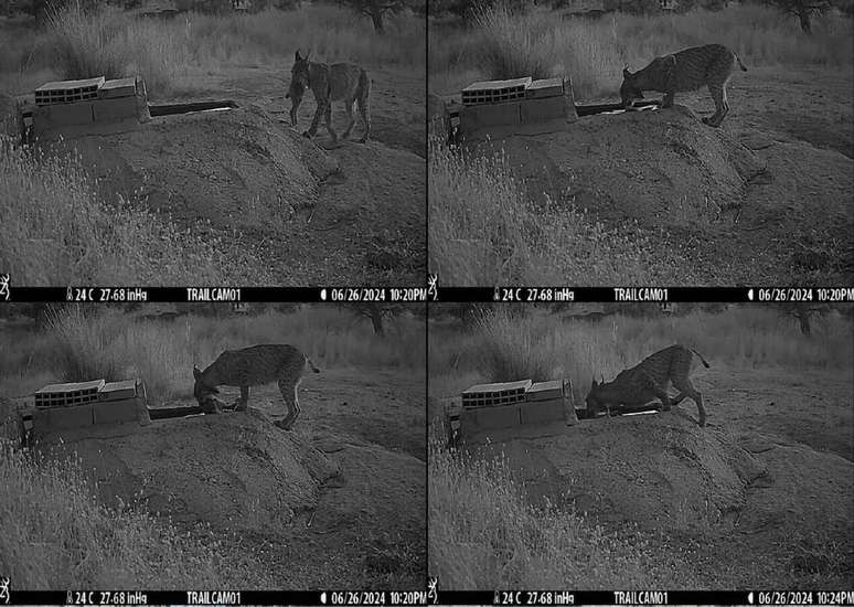 Uma equipe liderada pelo IREC (Instituto de Pesquisa Sobre Recursos de Caça), da Espanha, usou câmeras de armadilhagem para documentar pela primeira vez como fêmeas de lince-ibérico mergulham deliberadamente coelhos recém-caçados em reservatórios de água antes de entregá-los aos seus filhotes.