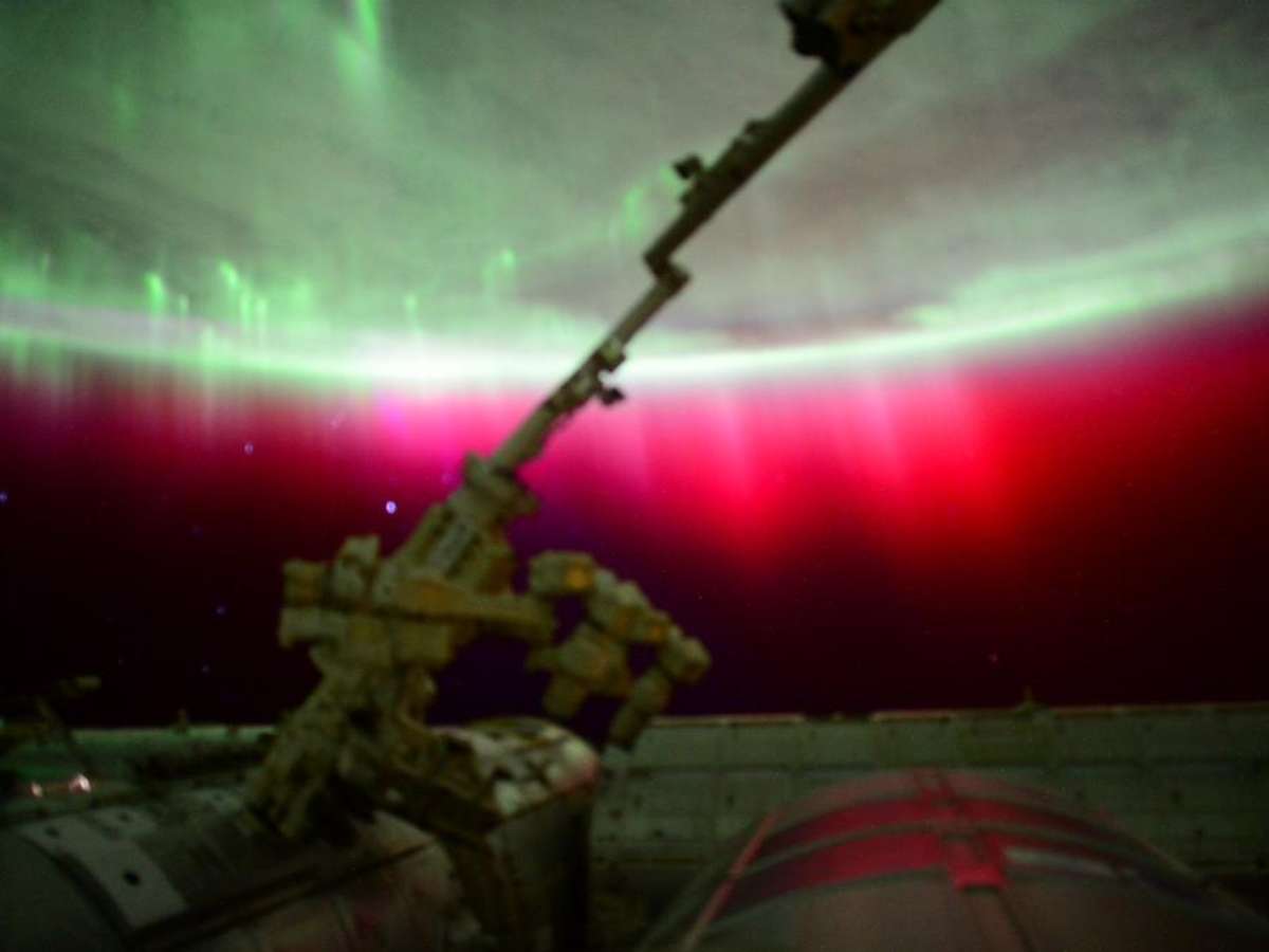 I've never seen this before- red #aurora. Spectacular! #YearInSpace pic.twitter.com/j2DVejt974