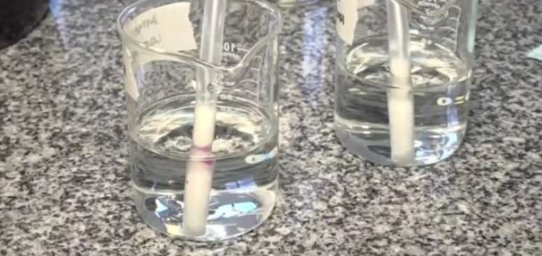 "Dentro do canudo, com os reagentes protegidos para que ninguém tenha contato com eles, ocorre uma mudança de coloração visível na parte externa do canudo", acrescentou.