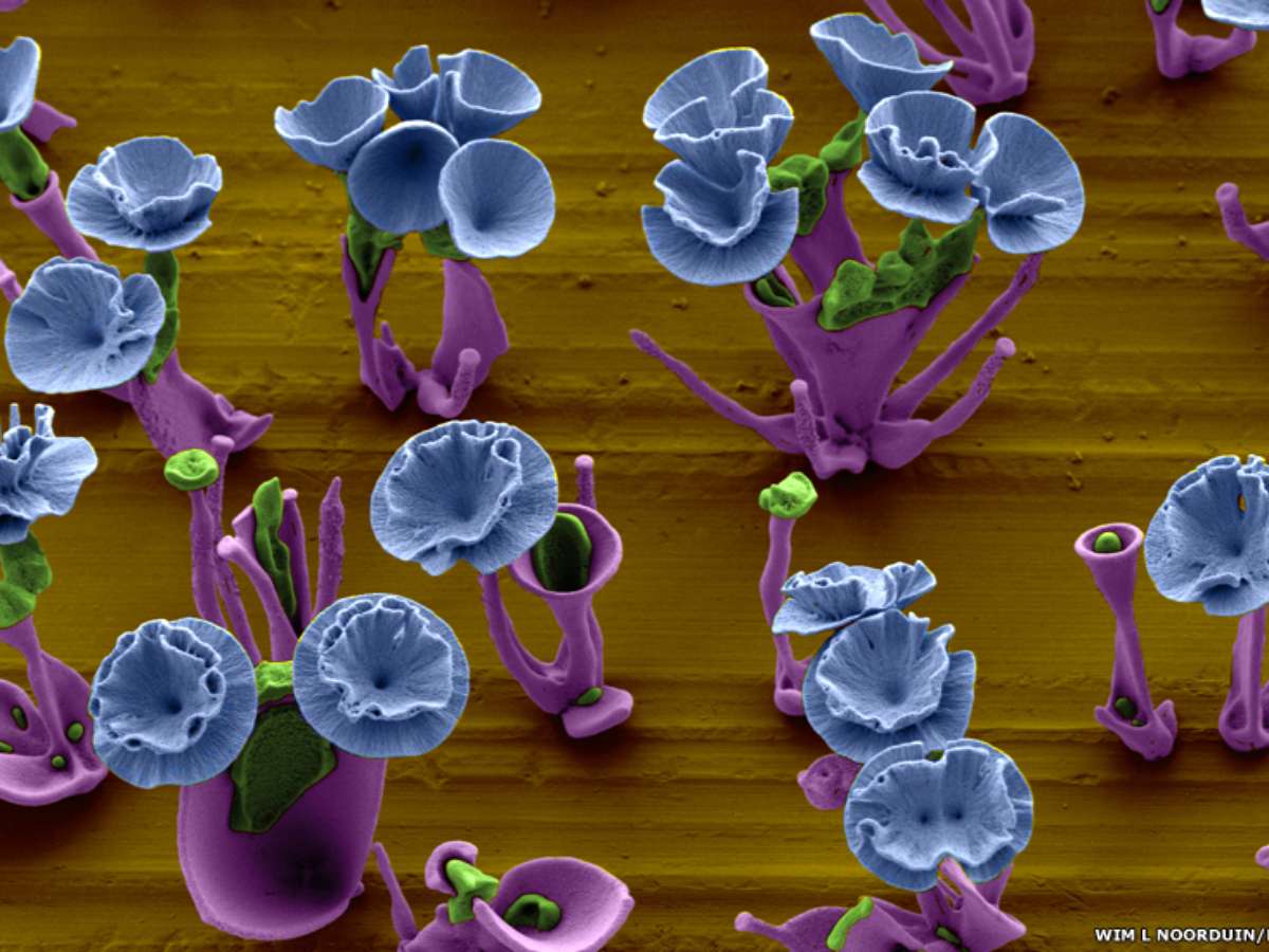 O cientista Wim L Noorduin, da Escola de Engenharia e Ciências Aplicadas (SEAS, na sigla em inglês) em Harvard, aprendeu a manipular gradientes químicos para criar estruturas microscópicas semelhantes a flores.