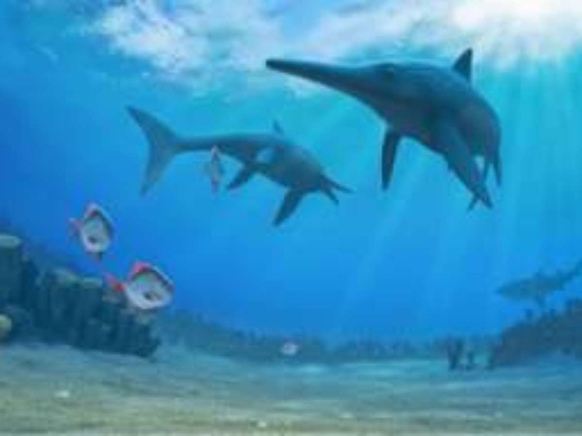 Estes predadores marinhos tinham um corpo parecido com o do golfinho, o que dava ao ictiossauro velocidade e permitia que ele se alimentasse de peixes e lulas.