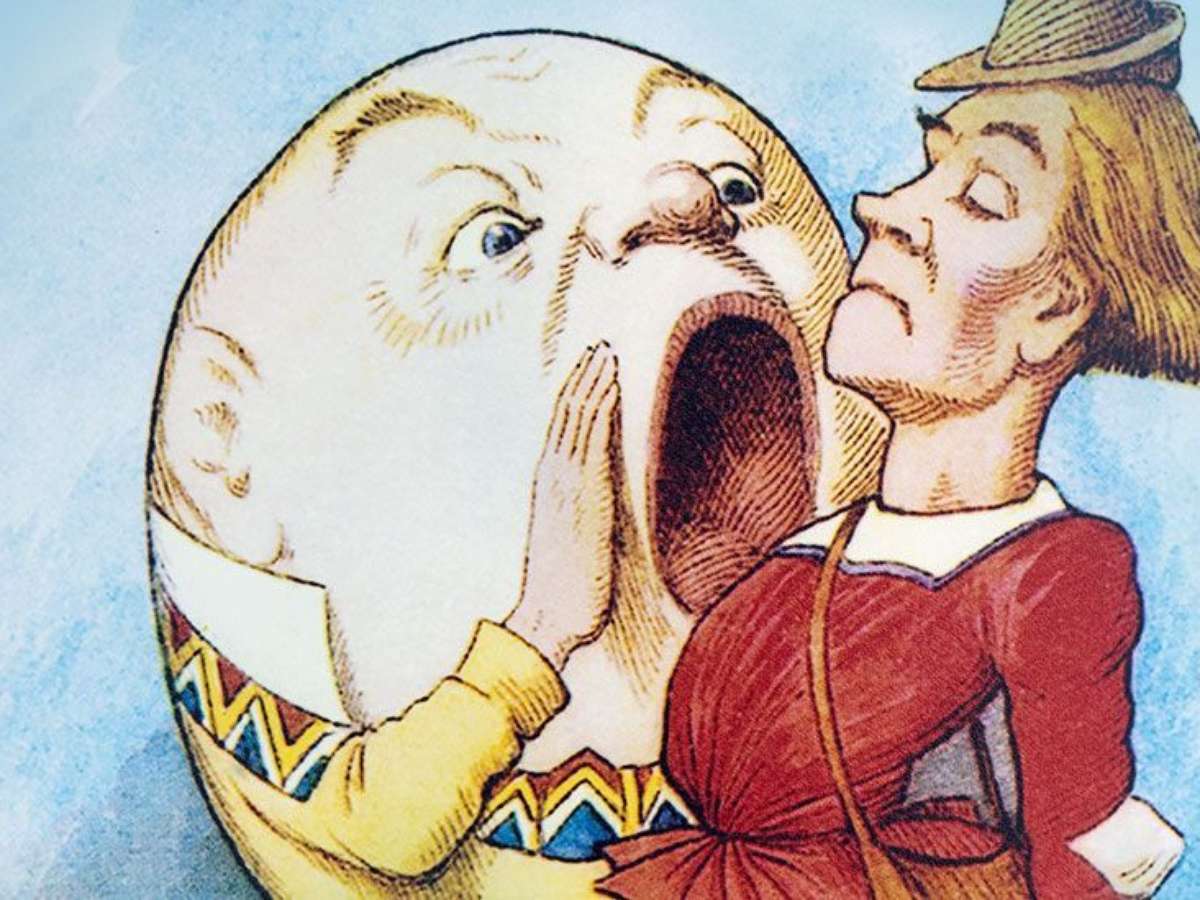 Um nome como Humpty Dumpty é a melhor maneira, como ele diz, de evocar a forma do personagem, um ovo antropomórfico, do que qualquer outro som aleatório?