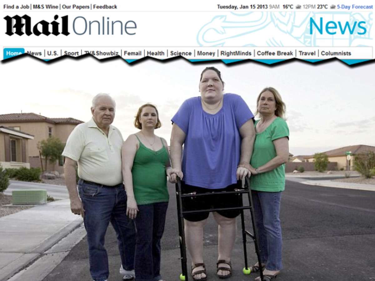Uma americana que não parava de crescer morreu na segunda-feira aos 34 anos. Tanya Angus passou os últimos 12 anos tentando encontrar a cura para a síndrome que a fez chegar aos 2,11 m de altura e mais de 180 kg. Segundo o jornal britânico Daily Mail, ela sofria de uma das formas mais graves de gigantismo.