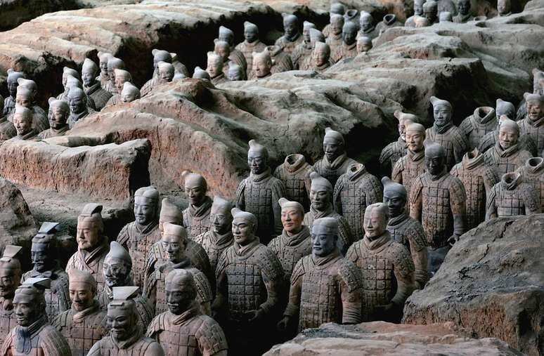 Foi assim que seus súditos construíram o formidável Exército de Terracota, uma coleção de esculturas de 8 mil soldados, cavalos e carros que foram enterrados junto com o imperador, depois que este perdeu sua última batalha: contra a morte.