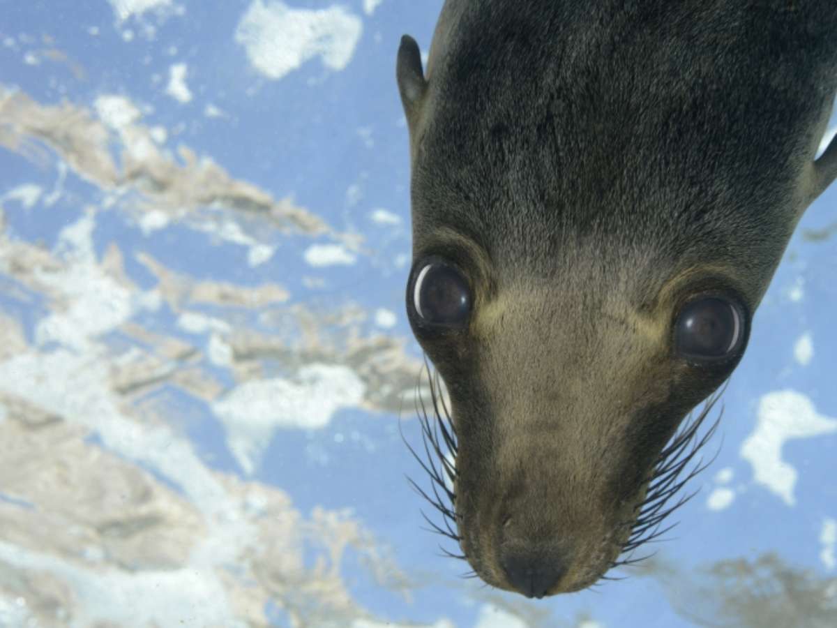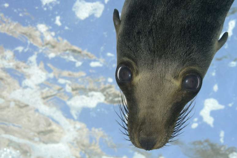 O curioso leão-marinho mergulha em direção à câmera, expondo sua vulnerabilidade no México