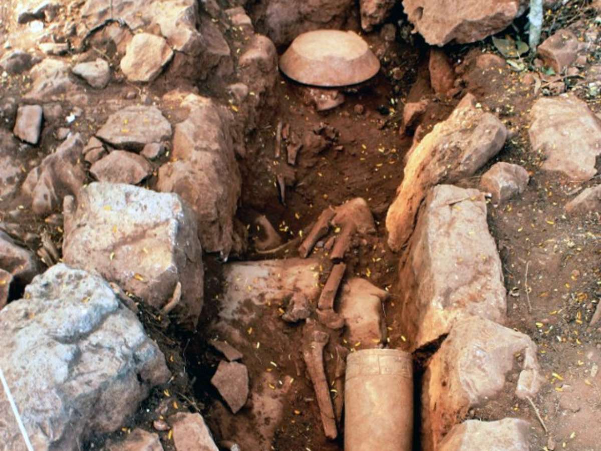 Foram localizadas ao menos sete ossadas, ao lado das quais, à maneira de oferendas, havia 30 peças de cerâmica, entre pratos, vasos, tigelas, além de pontas de obsidiana, contas de jade e brincos de conchas, o que indica que se comercializava com outras regiões da Mesoamérica.