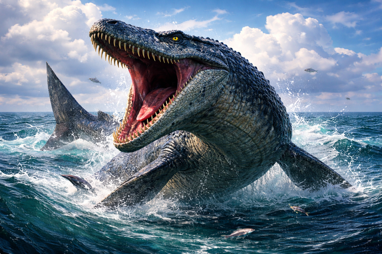 Uma descoberta surpreendente na América do Norte está reescrevendo o que se sabia sobre os mosassauros, os gigantescos répteis marinhos do final da era dos dinossauros. Pesquisadores descobriram que esses superpredadores, antes considerados estritamente oceânicos, passaram seu capítulo final rondando rios de água doce ao lado de crocodilianos e grandes dinossauros.