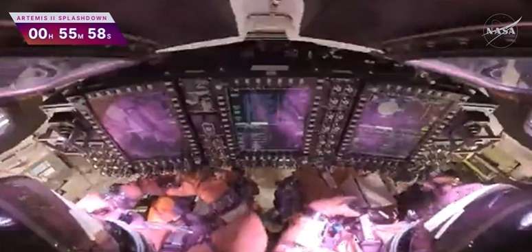 Antes de começar a descida, os astronautas realizam uma série de preparativos dentro da cápsula Orion. Eles organizam os equipamentos, ajustam os assentos e garantem que tudo esteja seguro para a reentrada.