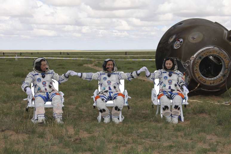Astronautas chineses se preparam para deixar a cápsula, depois de 15 dias em órbita da Terra