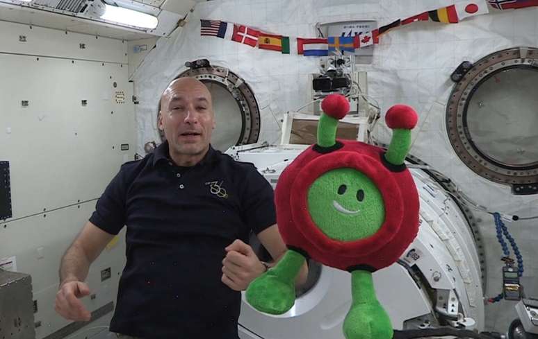 Mascote 'alienígena' visita astronautas na Estação Espacial Internacional