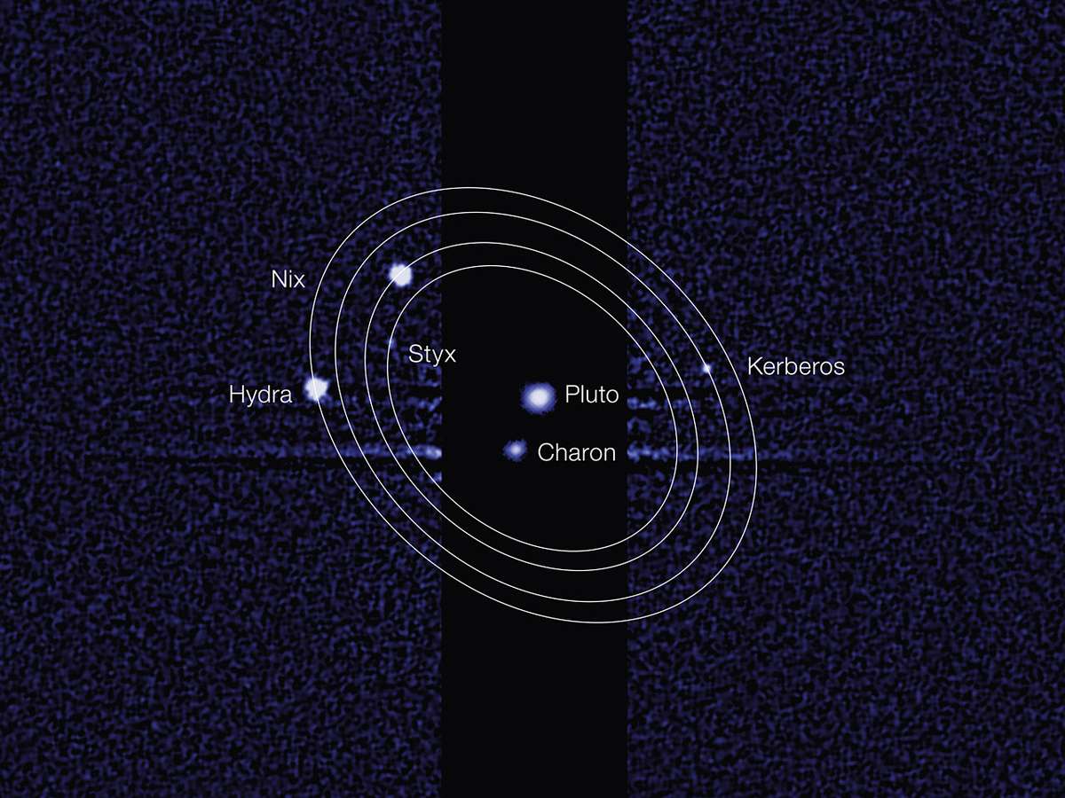 As novas luas foram descobertas durante observações do sistema de Plutão feitas com o telescópio Hubble. O anúncio aumenta de três para cinco o número conhecido de satélites naturais do planeta anão. Kerberos fica entre as órbitas de Nix e Hidra, duas luas maiores encontradas pelo Hubble em 2005. Styx fica entre Caronte e Nix. Ambas têm órbitas circulares, presumivelmente no mesmo plano de outros satélites no sistema. Kerberos tem um diâmetro estimado em 13 a 34 quilômetros, enquanto Styx parece ter uma forma irregular e possui entre 10 e 25 quilômetros, de acordo com as estimativas dos astrônomos.