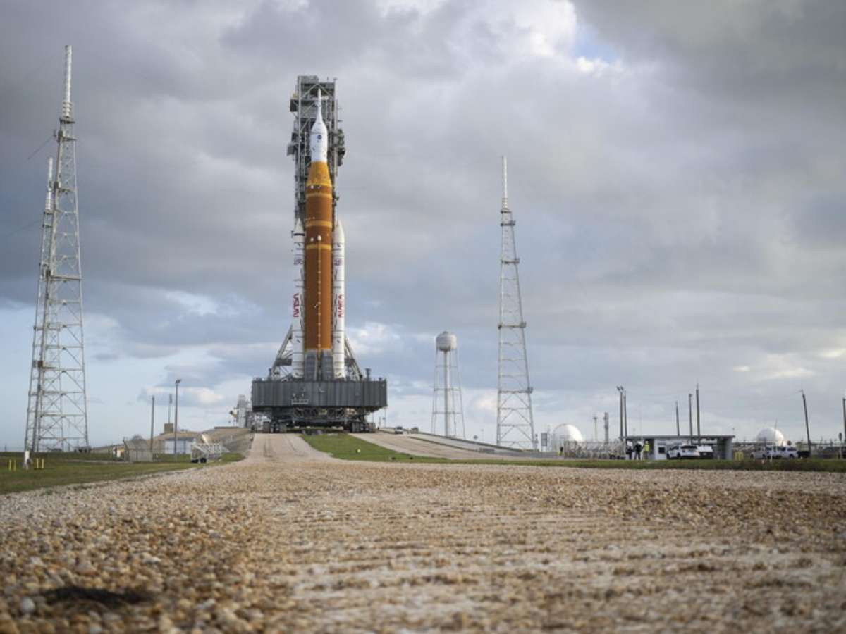 Foguete de missão rumo à Lua retorna para plataforma de lançamento