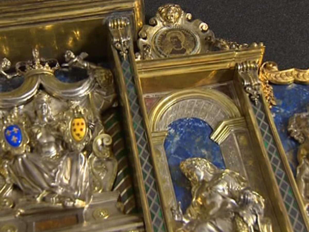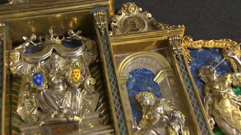 Entre os objetos, todos da época da Renascença, estão taças feitas em prata e com conchas e até patas de águia, painéis encomendados pelos Médici, na Itália e peças com o brasão real de Portugal