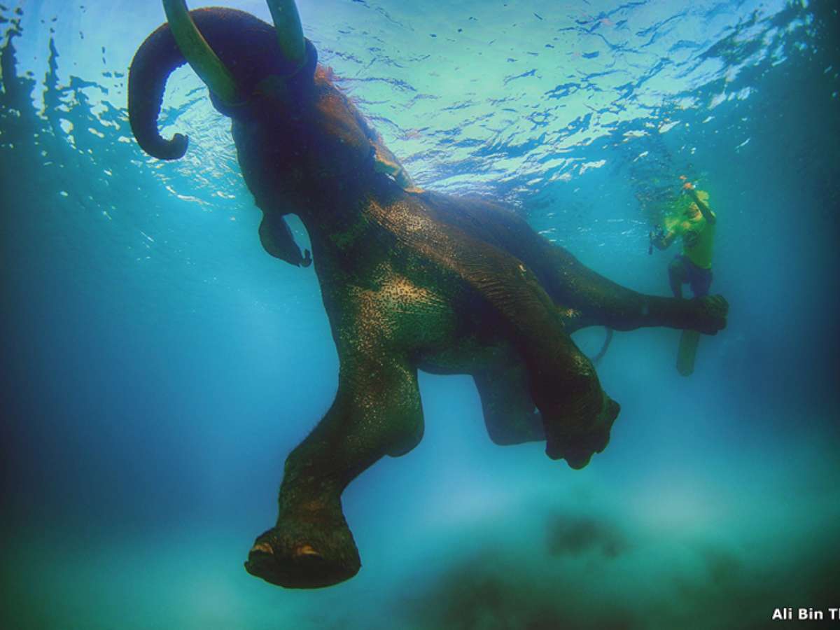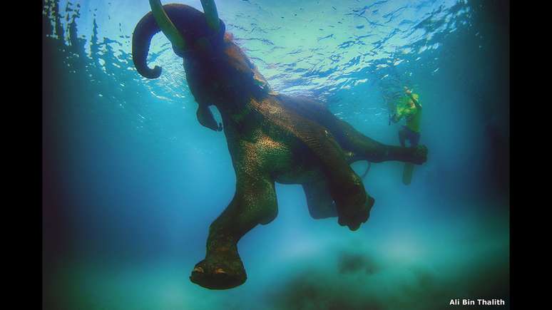 Nadar com um elefante nos arredores das ilhas Andaman, no oceano Índico, "foi um momento aterrorizante", conta Bin Thalith. "Mas foi uma das minhas melhores experiências."