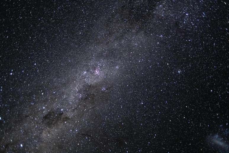 Compartilhada nas redes sociais, a imagem mostra um amplo campo estrelado, com milhares de estrelas e nuvens luminosas de poeira que compõem a estrutura da galáxia.