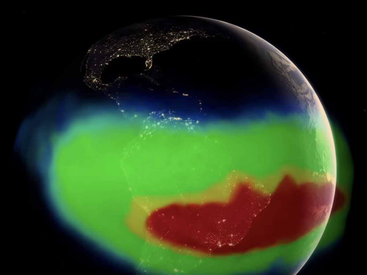 Esse campo magnético, contudo, tem um ponto excepcionalmente fraco. Fica sobre a América do Sul e o sul do Oceano Atlântico, batizada de Anomalia do Atlântico do Sul.