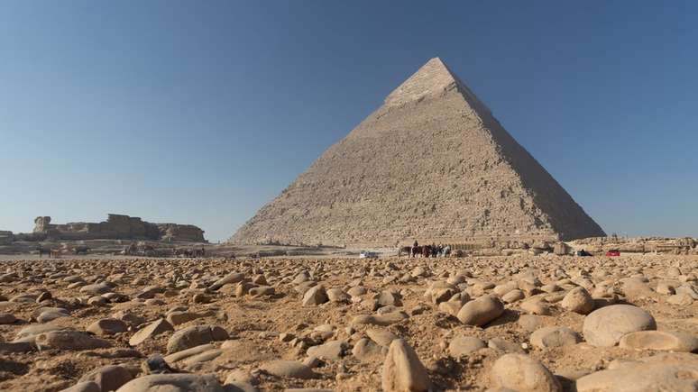 Com 146m de altura, a Grande Pirâmide é a maior das estruturas de Gizé e foi construída durante o reino do faraó Quéops, entre 2509 e 2483 a.C.