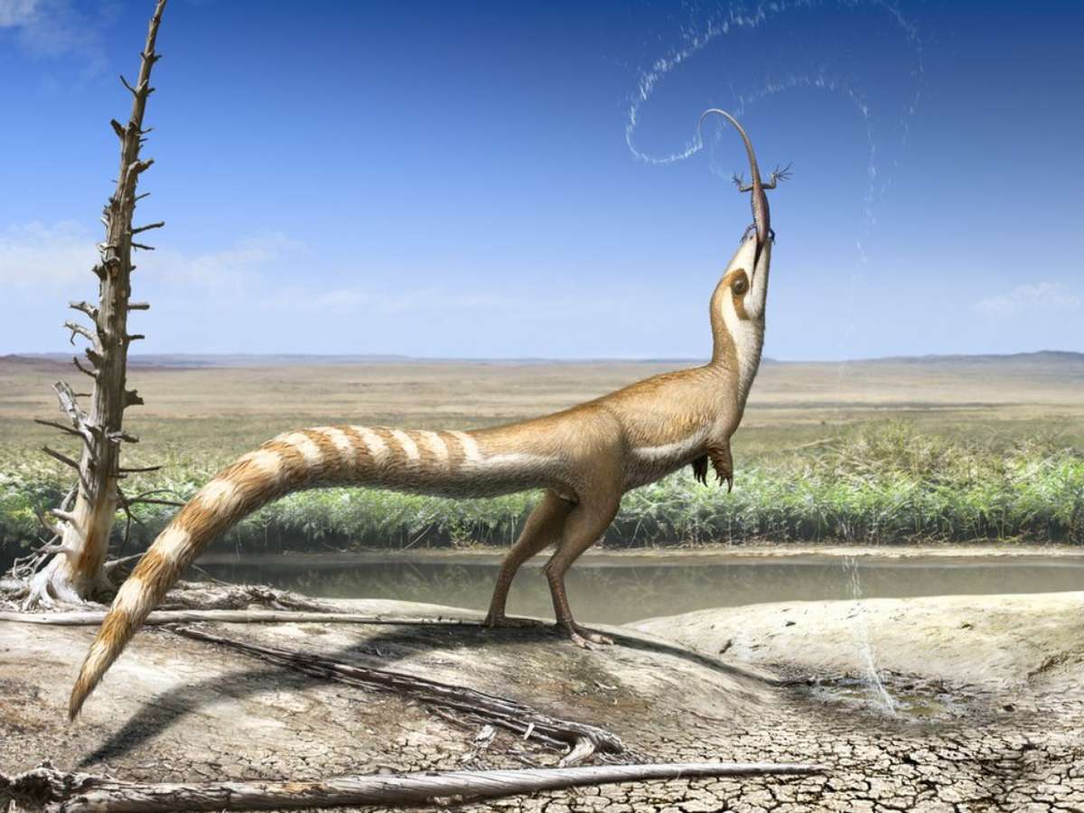 Cientistas chegaram a essa conclusão ao estudar três fósseis do dinossauro. Eles conseguiram estabelecer suas cores e constataram que o animal bípede tinha cauda listrada e usava um tipo de camuflagem conhecido como contra-sombra - sendo mais escuro na parte superior do corpo e mais claro na inferior.