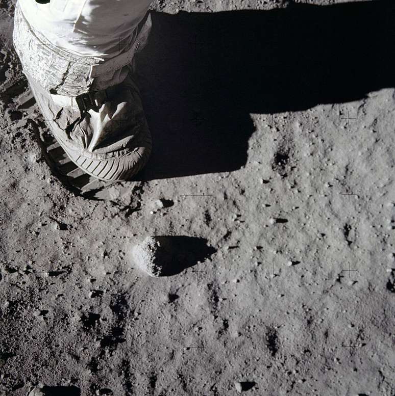 Enquanto o astronauta pronunciava as palavras cuidadosamente escolhidas pela Nasa que fizeram história, Aldrin o filmava a partir do módulo lunar. Após 19 minutos, ele se juntou a Armstrong na superfície do satélite.