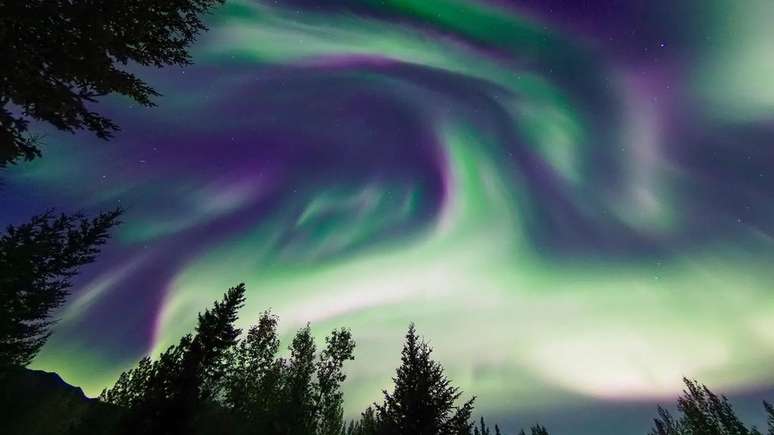 Era o meio do inverno e o céu do Alasca era instável.