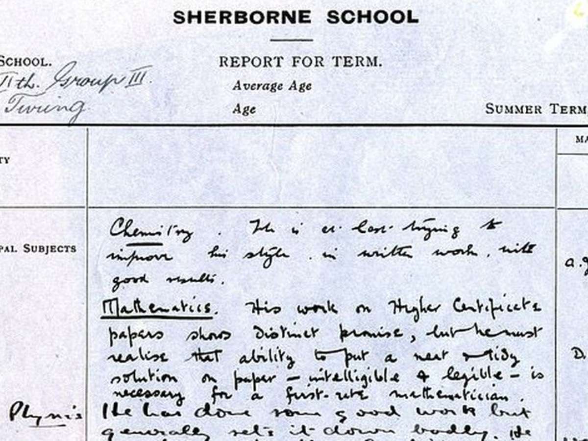 A avaliação do cientista britânico Alan Turing por seus professores quando ele tinha 13 anos não dava qualquer indício de que seria uma das mentes mais brilhantes do século 20; este e outros itens fazem parte de mostra inédita com seus objetos pessoais.