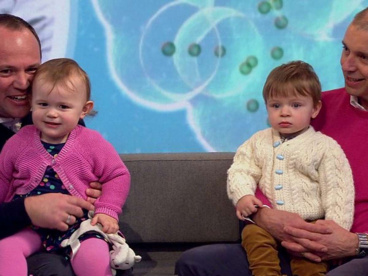 Mas, diferentemente do que acontece com muitos casais homossexuais, Simon e Graeme não tiveram que escolher qual dos dois seria o pai biológico dos bebês, uma vez que Stone gestaria um filho concebido por cada um.