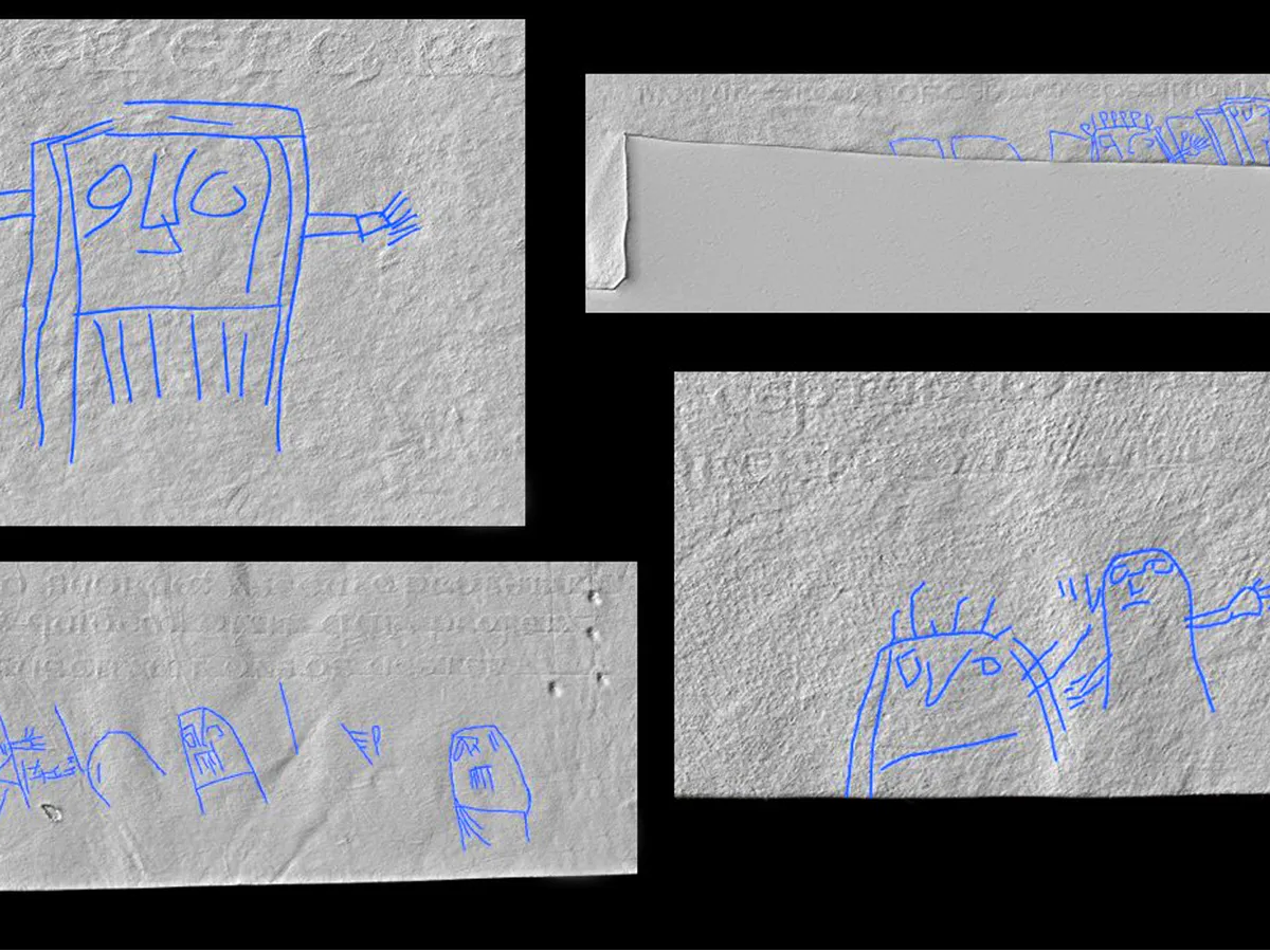 Ela não usou tinta - apenas arranhou o papel - e os rabiscos ficaram quase invisíveis a olho nu. Ninguém sabia que eles estavam ali, até o ano passado.